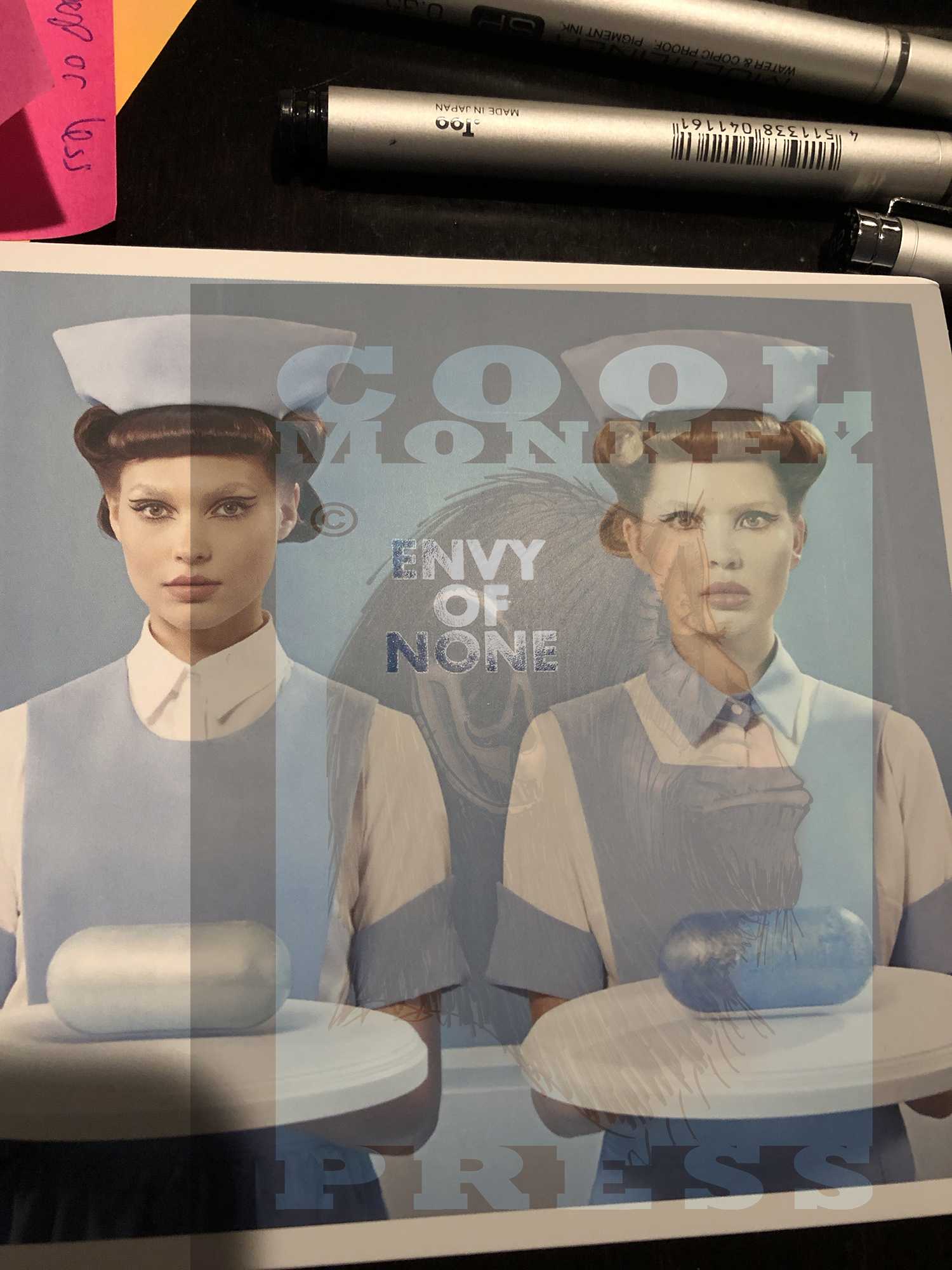 Working on some digital coloring for a new print. The figure was done in pencil first, and then with Copic brush pens and multilners, and the background was Copic Wide and Sketch markers.